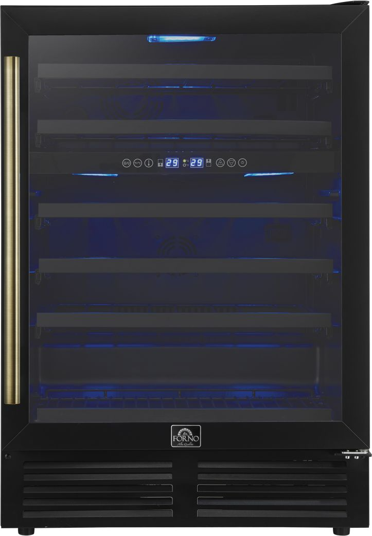 The Bacchino 24 Inch Wine Cooler in Black with Antique Brass Handle offers a flexible design that can be built-in or freestanding, making it a perfect fit for any kitchen or home bar. With dual temperature zones, it stores up to 51 bottles at optimal conditions ranging from 40°F to 65°F.Read More