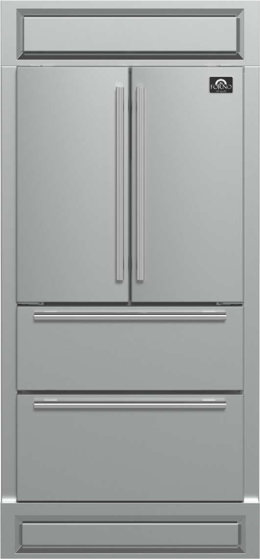 Upgrade your kitchen with the Forno Moena 36" Built-In French Door Refrigerator, designed for seamless integration and premium performance. Featuring a decorative grill trim that adds 4 inches, this refrigerator fits effortlessly into modern kitchens while maximizing storage space. Powered by a high-efficiency inverter compressor, it ensures energy savings, quiet operation, and precise temperature control to keep your food fresher for longer.Read More