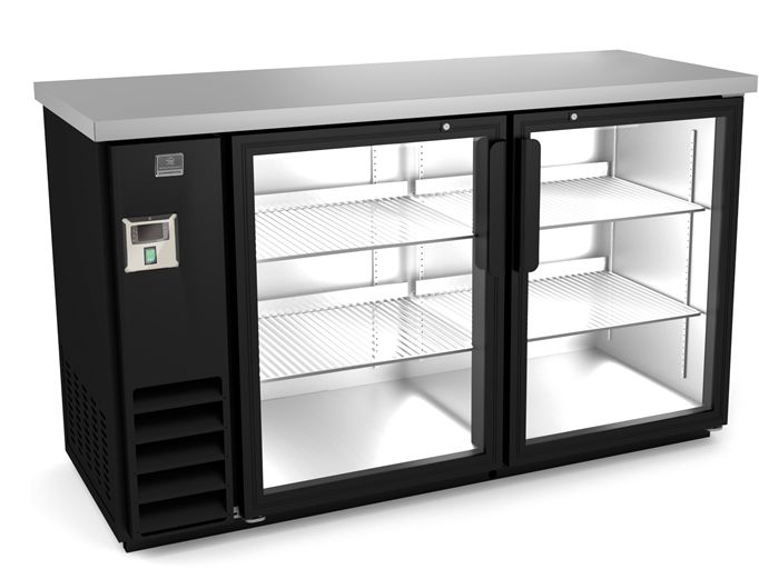 Back bar refrigerator with glass doors. Exterior back and bottom panel in galvanized steel, top panel in 304 stainless steel and exterior panel in painted steel; interior back and top panels in 430 stainless steel, interior bottom panel and worktop in 304 stainless steel. Fin & tube condenser to improve the performances in high-temperature environments. Automatic Defrost Cooling System and temperature control. Heavy duty adjustable shelves and stay-open self-closing doors.Read More