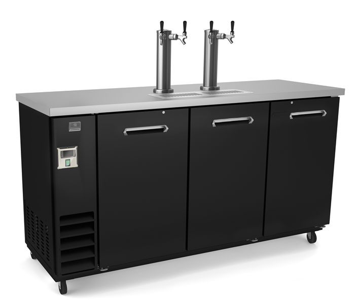 Beer dispenser with 3 doors and 2 columns. Exterior back and bottom panel in galvanized steel, top panel in 304 stainless steel and exterior panel in painted steel; interior back and side panels in 430 stainless steel, interior bottom panel and worktop in 304 stainless steel. Fin & tube condenser to improve the performances in high temperature environments. Automatic Defrost Cooling System and temperature control. Vinyl heavy duty adjustable, easy to handle and clean shelves.Read More