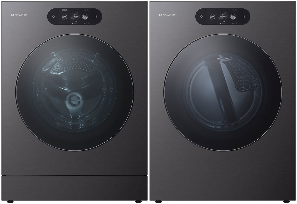LG Signature Brushed Black Steel Front Load Laundry Pair with 5.8 Cu. Ft. Front Load Washer and Front Load Gas Dryer.Read More