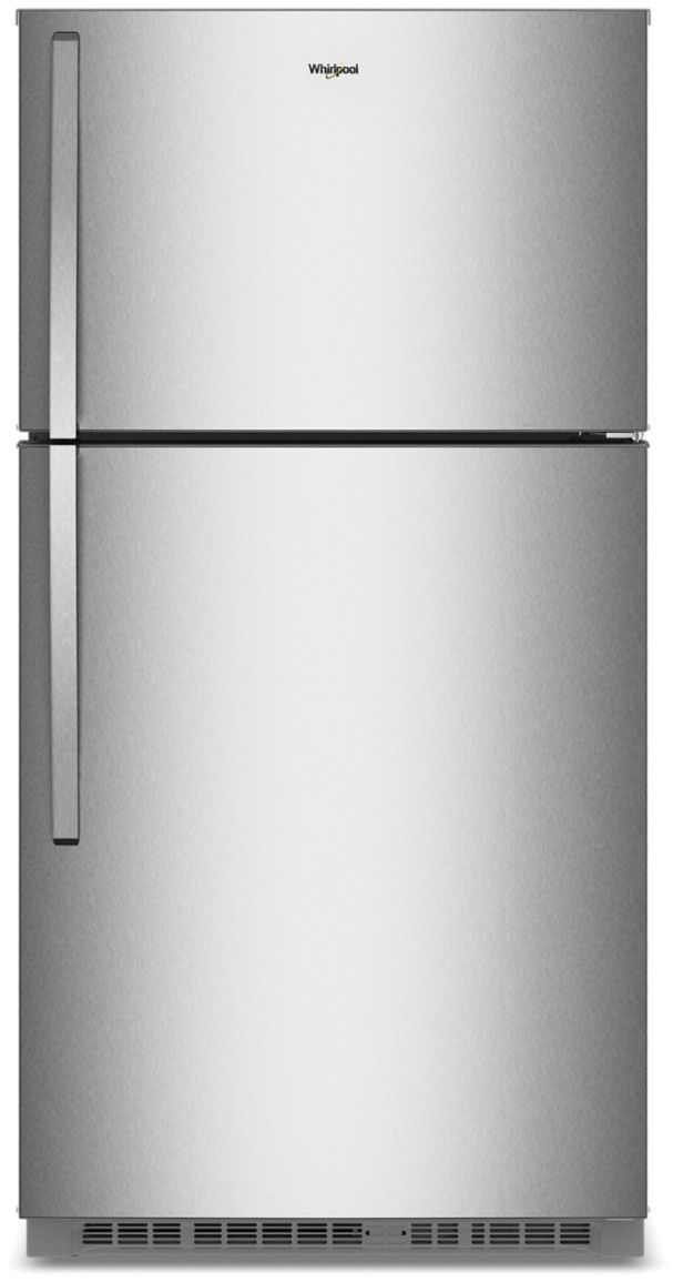 This Whirlpool® 32.8-inch Wide Top Freezer Refrigerator with Total Coverage Cooling helps keep every shelf cool. A Flexi-Slide™ Deli Drawer shifts for tall items, and Garage Ready cooling works in 38 °F (3.3 °C) –110 °F (43.3 °C) environments. The FreshSpace™ Humidity-Controlled Crisper Drawer keeps produce fresh, and Adjustable Door Bins shift up or down for family organization.Read More